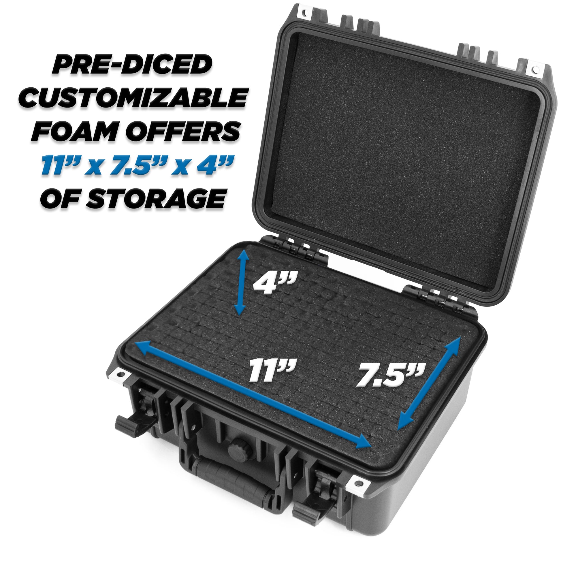 13" Waterproof Hard Travel Case with Padlock Rings and Customizable Foam - Fits Accessories up to 11" x 7.5" x 4"