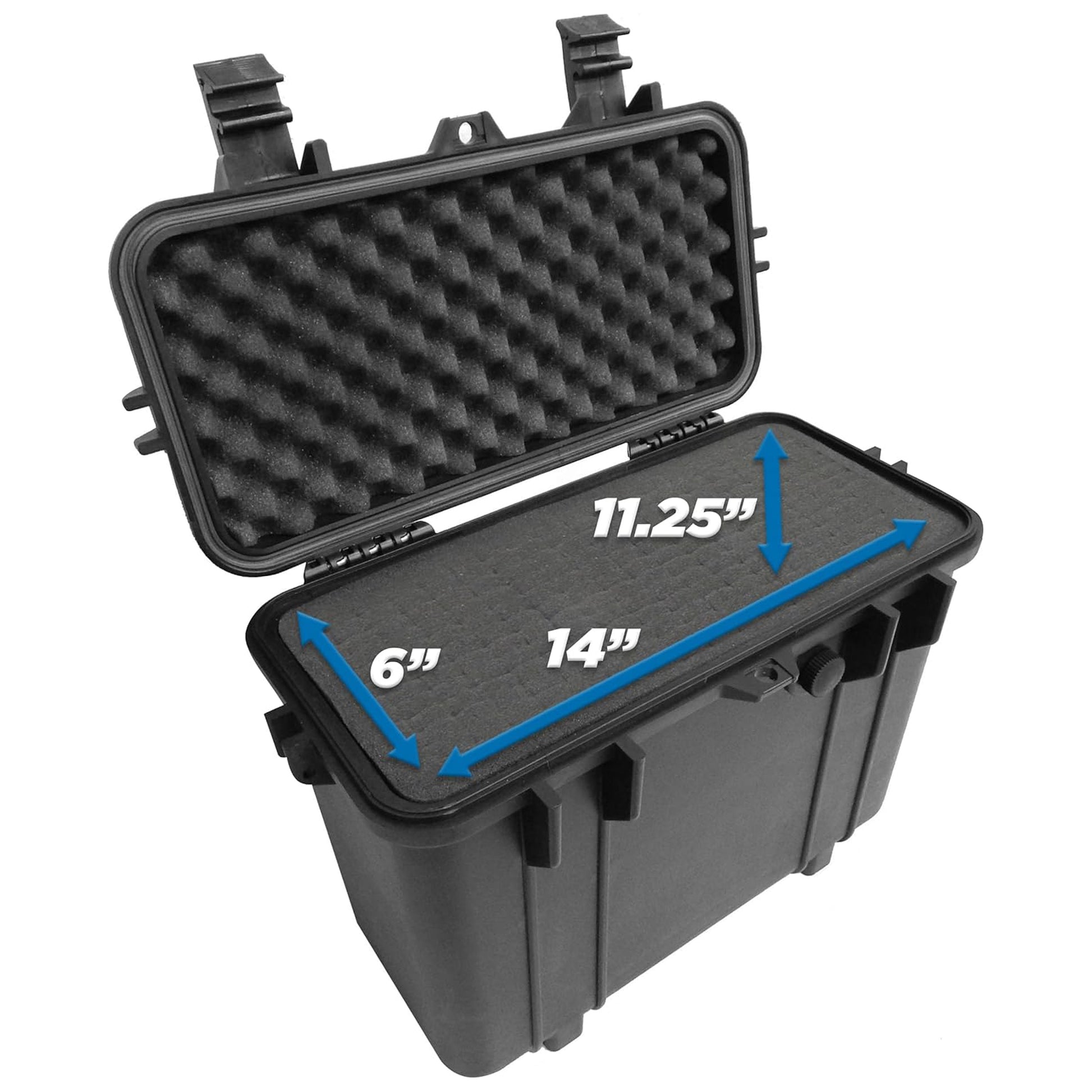 15" Waterproof Hard Travel Case with Padlock Rings and Customizable Foam - Fits Accessories up to 14” x 6” x 11.25”