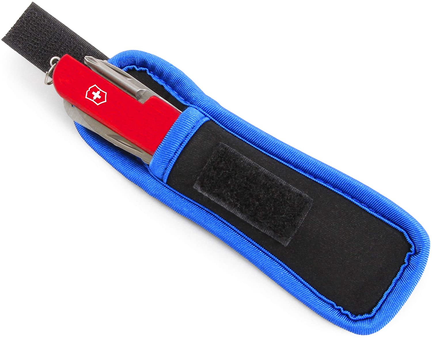 • Elastic Neoprene Lining: Your Swiss Army Pocket Knife Pouch conforms to your knife and accommodates for thicker models. The Velcro latch top stretches over your knife to snugly hold and protect it from moisture, dust, spills and drops; your Swiss Army Pocket Knife Holder is small enough to throw into any pocket, bag or purse.