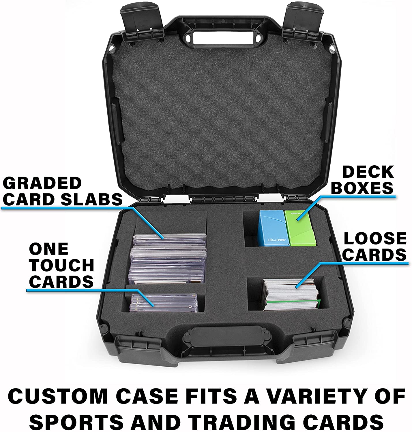 • Universal Card Format Compatibility: Ideal PSA card case also fitting BGS SGC GMA magnetic One Touch sleeved or toploader cards with customizable foam allowing you to make padded compartments for graded sports cards, accommodating over 60 graded card slabs and sleeved top loader cards.