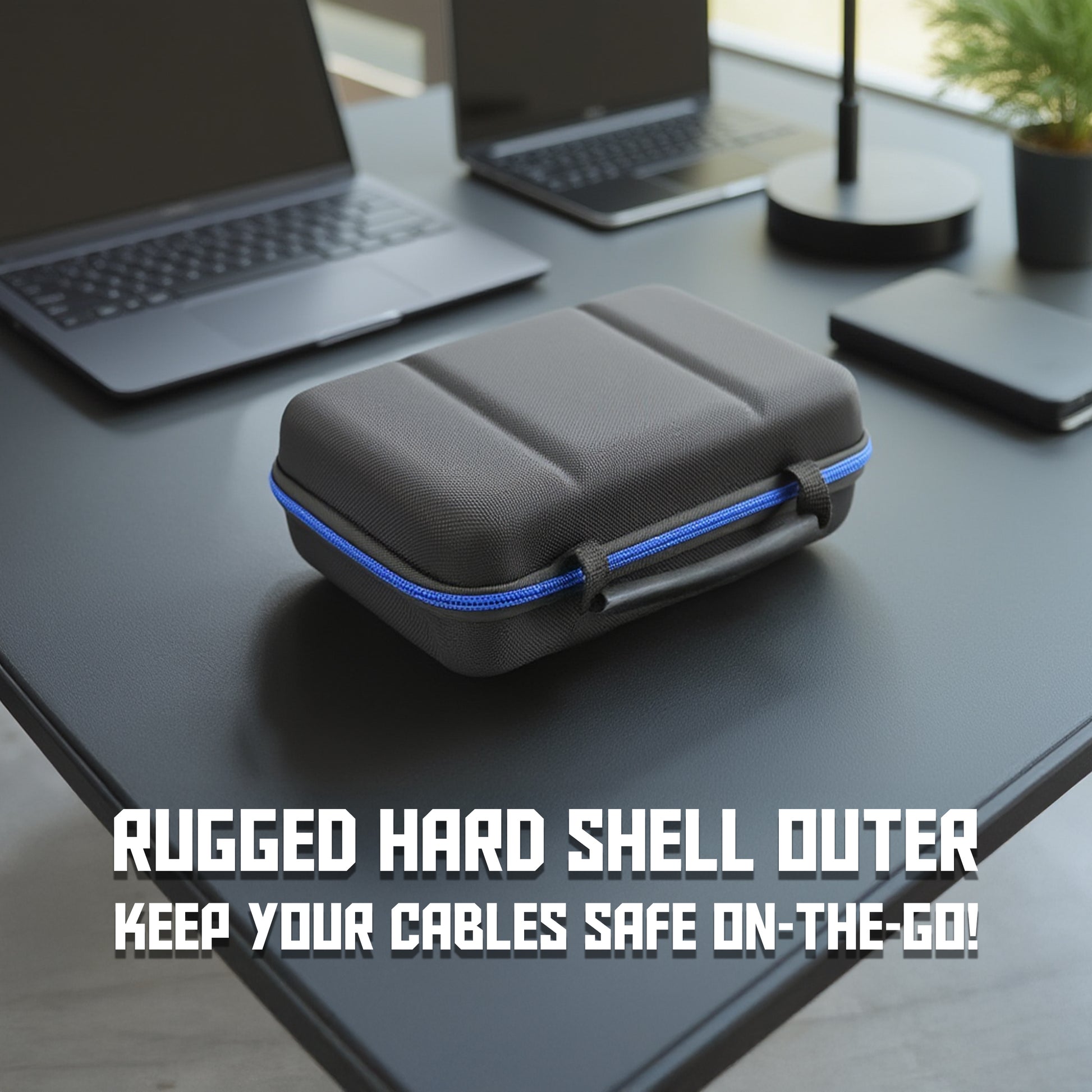 • Rugged Hard Shell Protection: Built with durable EVA material and tough exterior construction that shields your cables, chargers, and electronic accessories from drops, impacts, and daily wear during travel and transport.