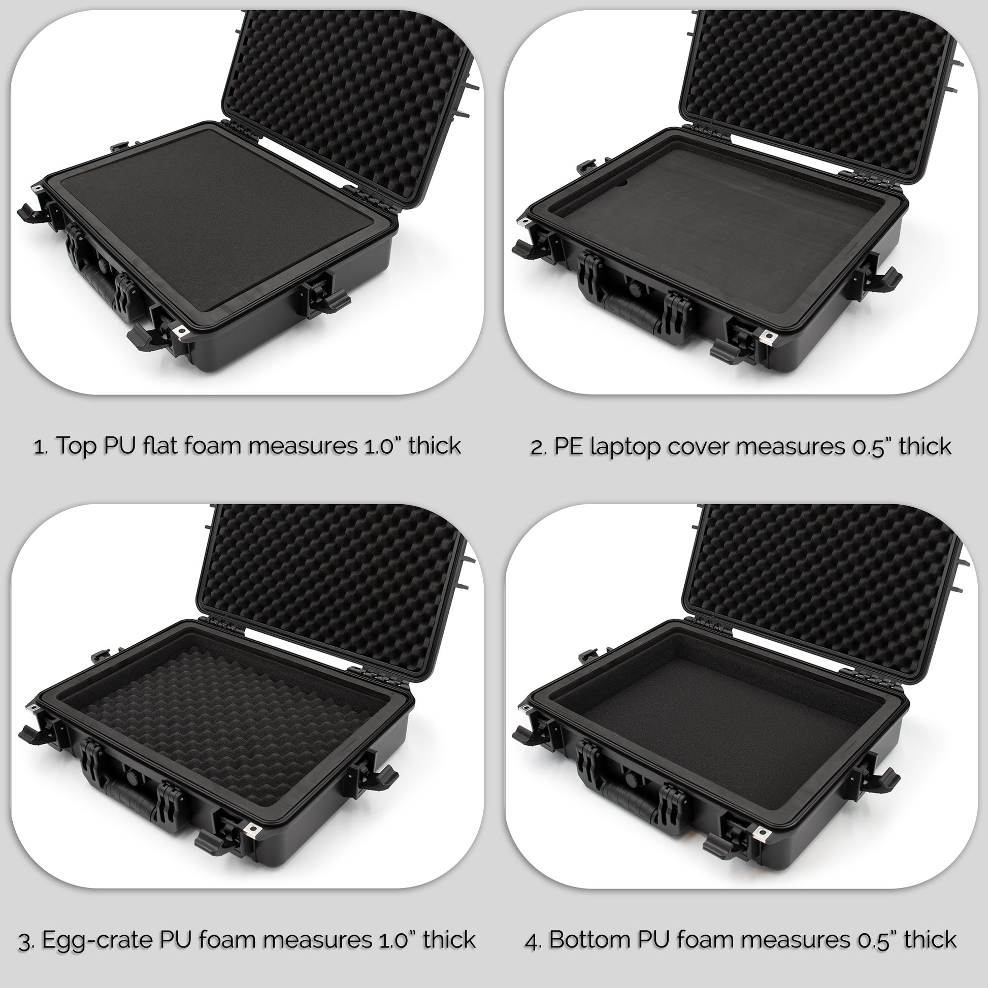 - Upgraded 3-Layer Foam Interior with 360° Safety – Features a redesigned foam system for superior shock absorption and scratch-free storage. Includes a flat stabilizing base layer, egg-crate shock-absorbing divider, polyethylene protective cover, and top snug-fit compression foam. Thick foam walls completely surround your laptop, preventing shifting and protecting against impact during transport.