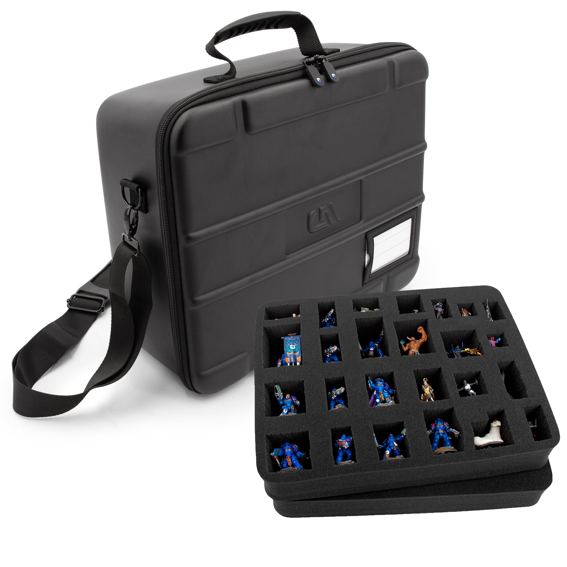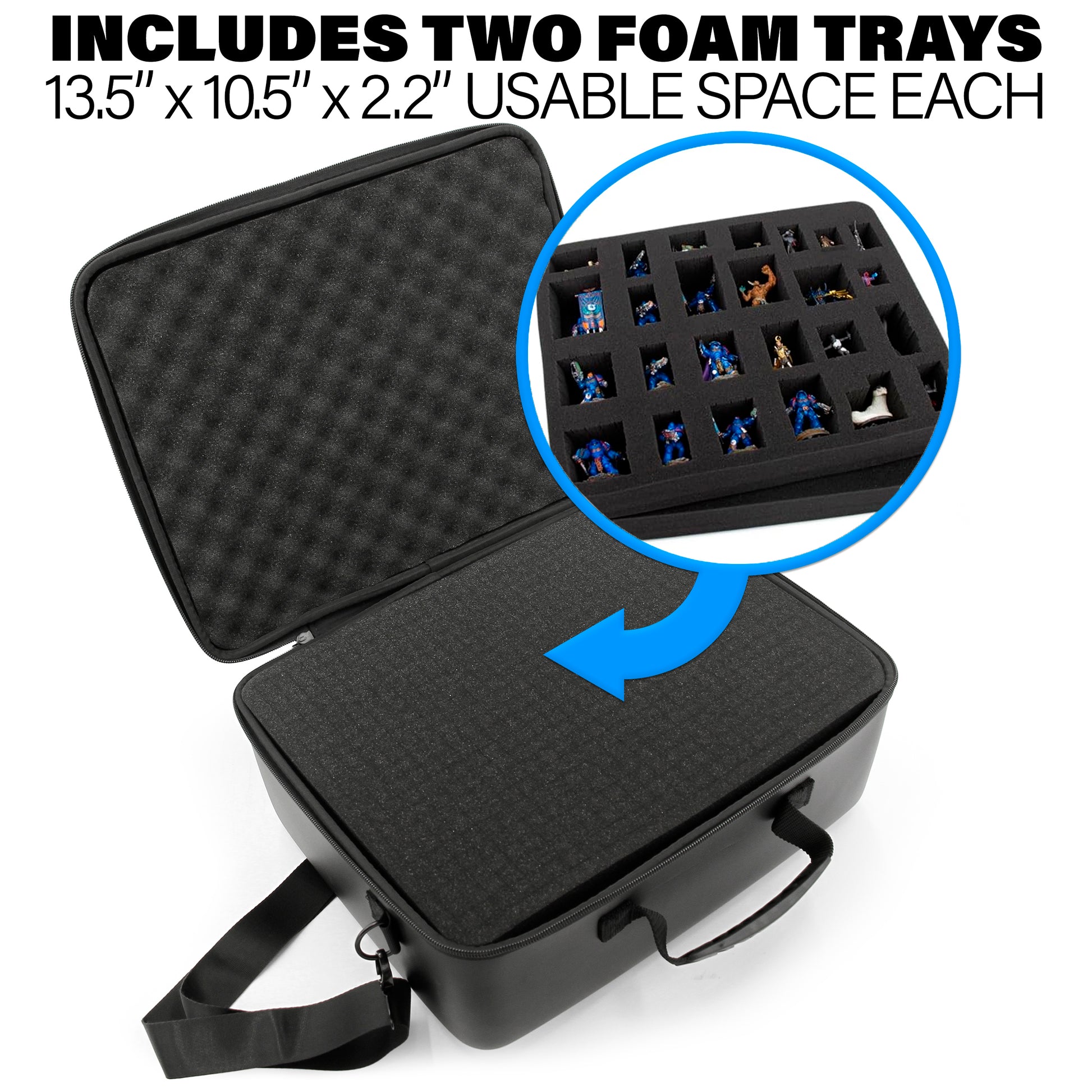 Miniature Carrying Case - Fully Customizable Miniature Storage Case with Two Pluck Foam Foam Trays For Minis, with Shoulder Strap