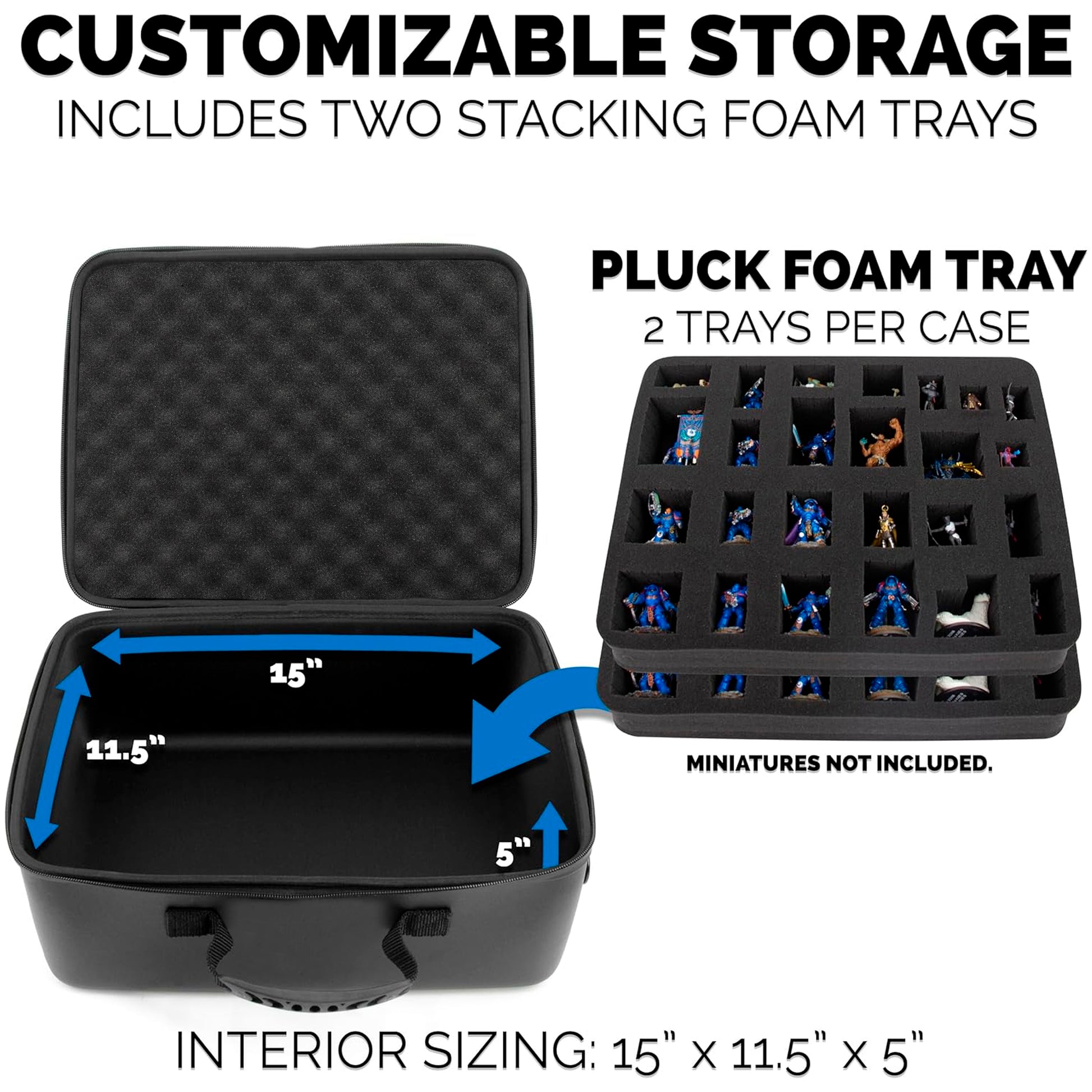 • Fully Customizable Dual Pluck Foam System: Two removable pluck foam miniature trays with 13.5" x 10.5" x 2.2" of usable space each, designed to accommodate minis of any size and shape including large units and vehicles for ultimate D&D miniature organization.