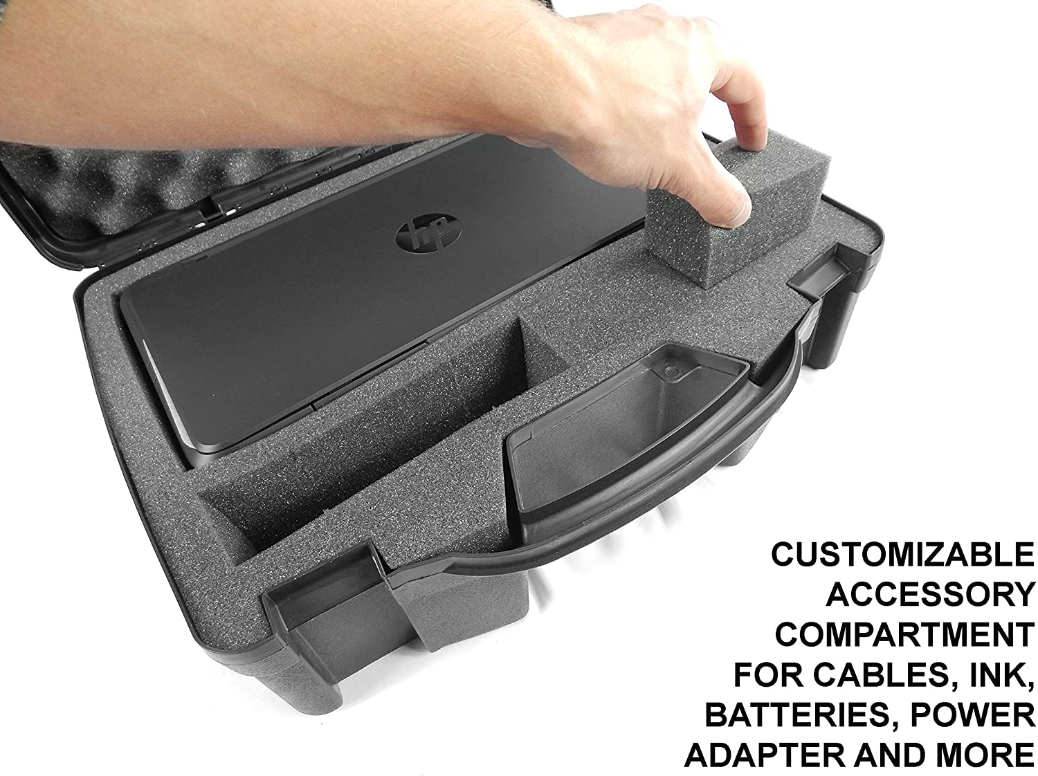 • Perfect-Fit Design: Mobile printer case is constructed specifically for the HP Officejet 200 (CZ993A) Portable printer with precisely molded protective foam compartments for printer and accessories. Note that this includes the case only, and multiple sizes are available.