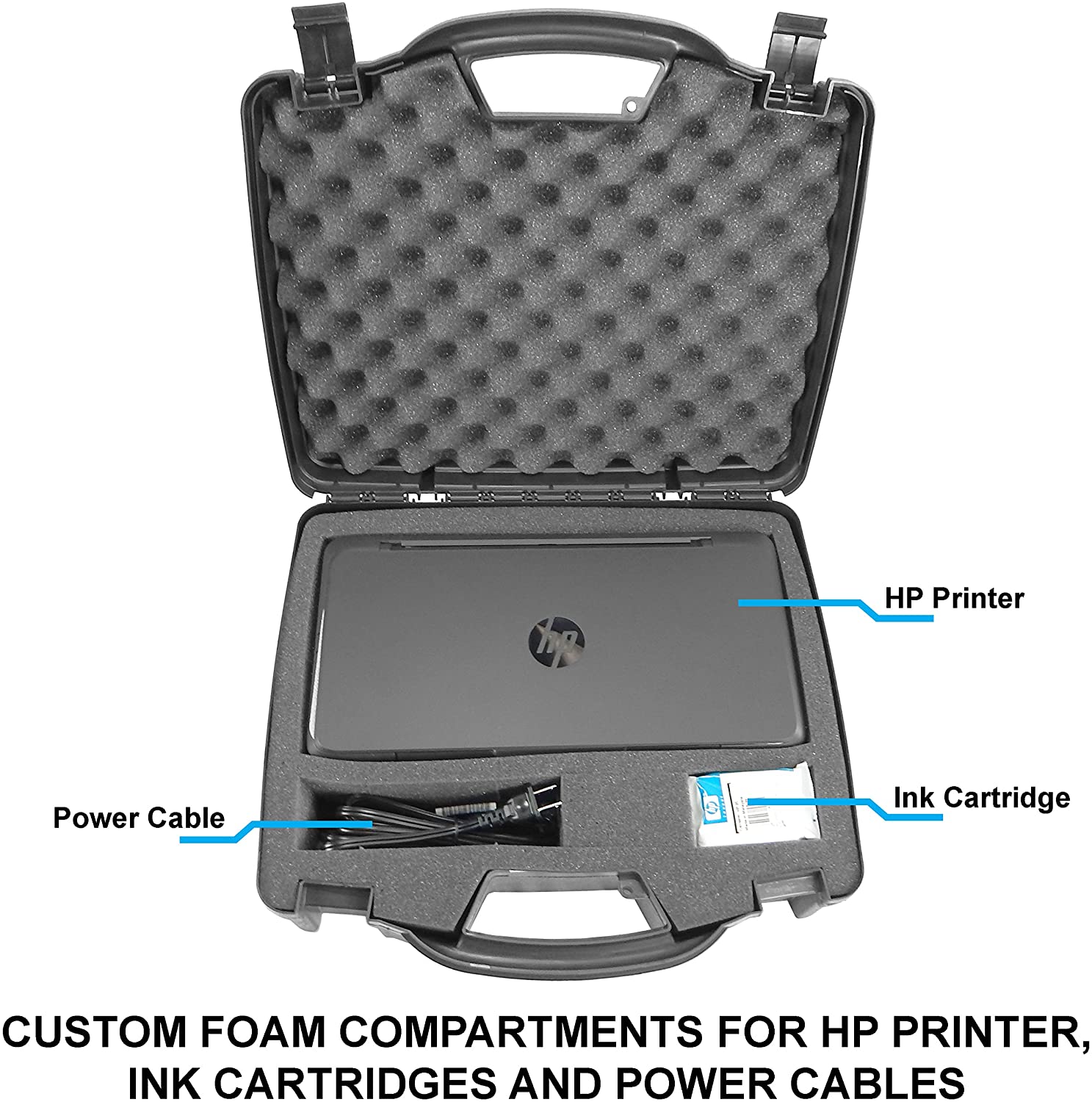 • Professional-Grade Construction: The rugged hard shell exterior is crafted from composite blow-mold plastic, while the internal densely-padded foam compartment snugly holds your printer, cable, and ink cartridges in place, providing impact-absorbing protection on all sides.