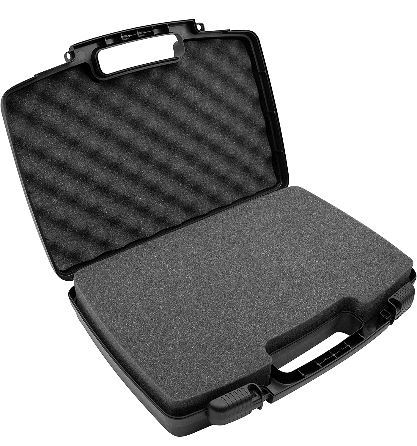 • Travel-Friendly Security: Compact 17" x 12.5" x 3.75" exterior with comfortable carrying handle, secure dual latch system, and padlock holes for added safety - fits easily in backpacks or luggage