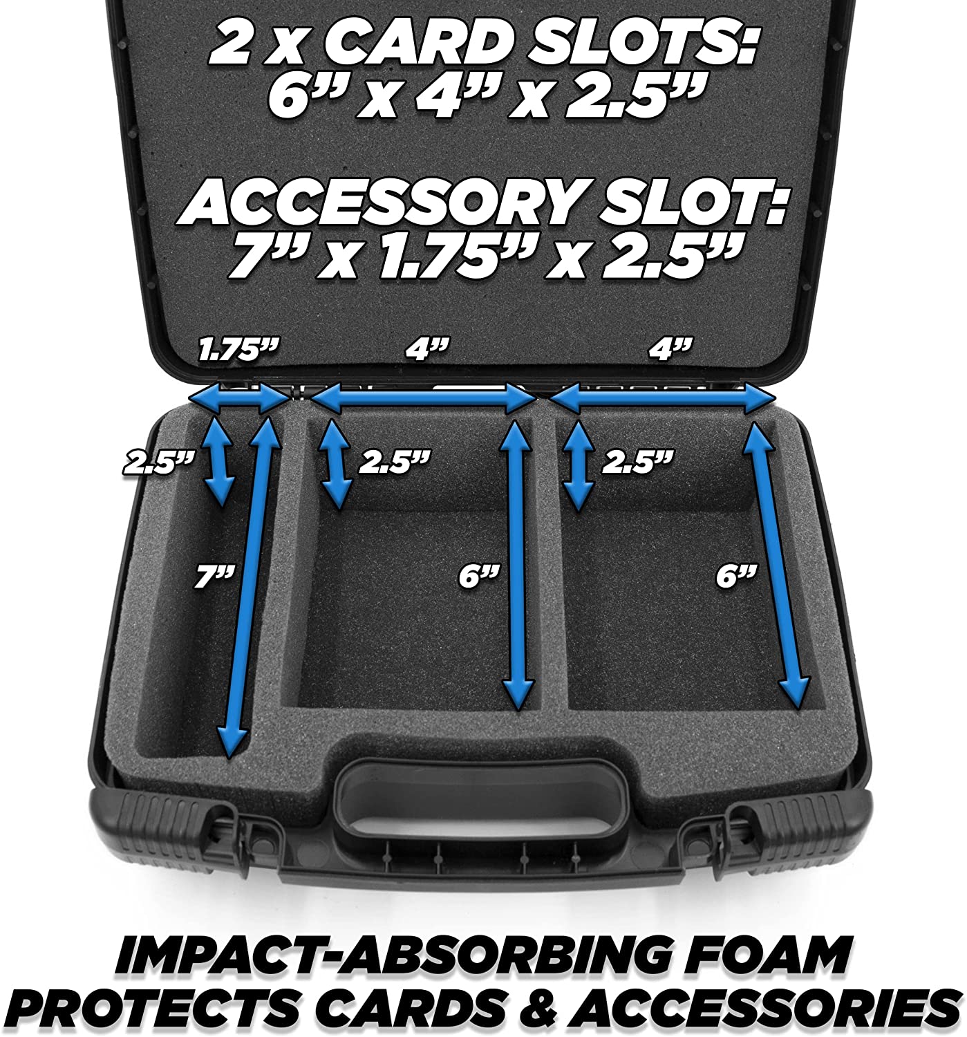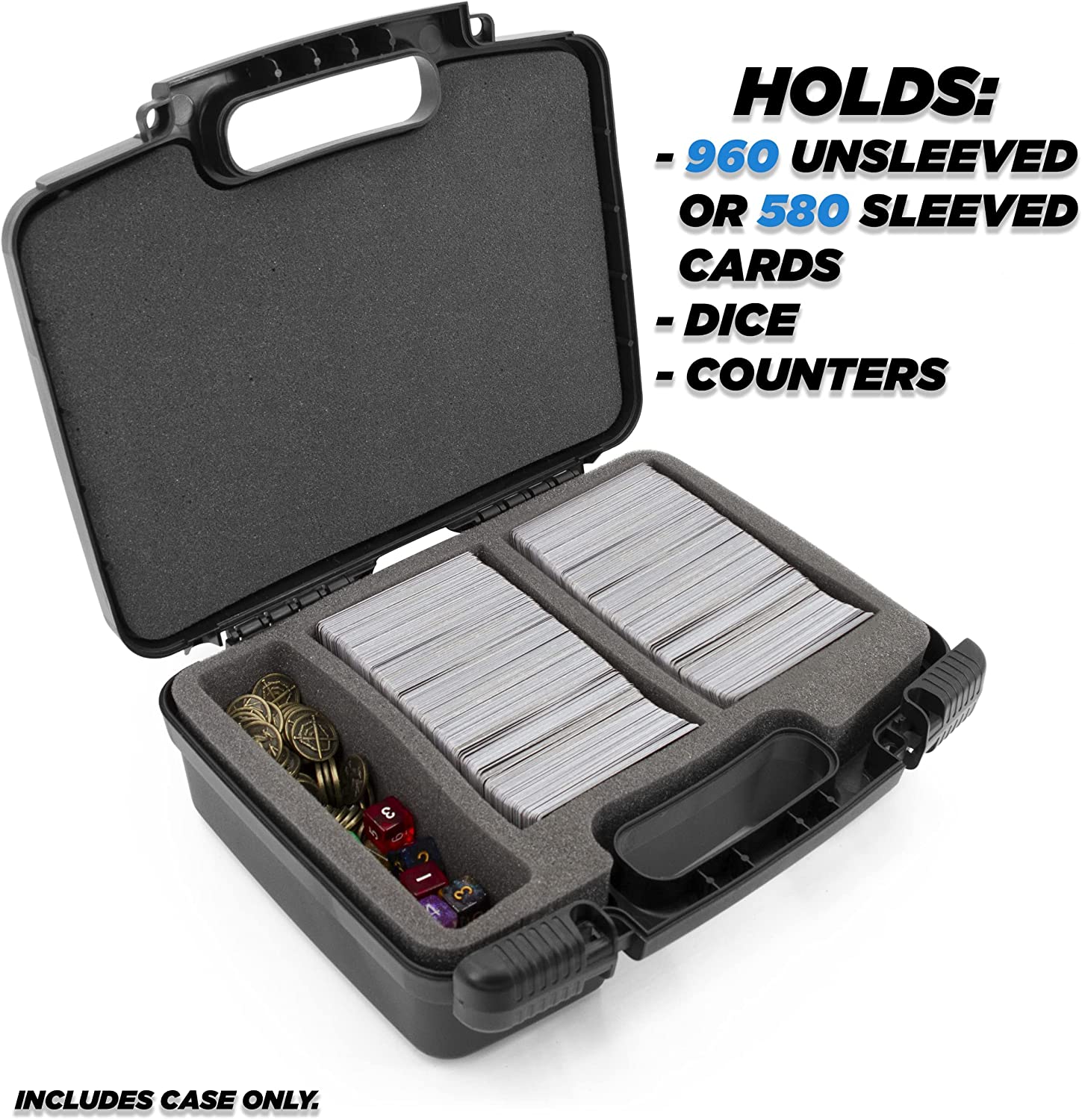 • 960-Card Maximum Capacity Protection: Hard shell card case holder holding up to 960 unsleeved cards or 580 sleeved cards (with dividers removed) despite ultra-compact 12" x 9.5" x 3.5" form-factor, providing optimal protection beyond standard card storage cases.