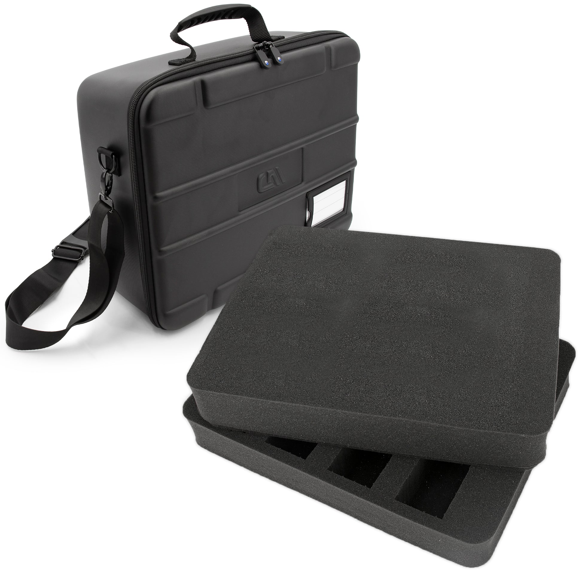 • Organize and Separate Accessories: Two foam layers keep delicate knobs and accessories completely separated and snugly held in place - simply pull top foam tray out to access devices below with professional exterior featuring name tag holder