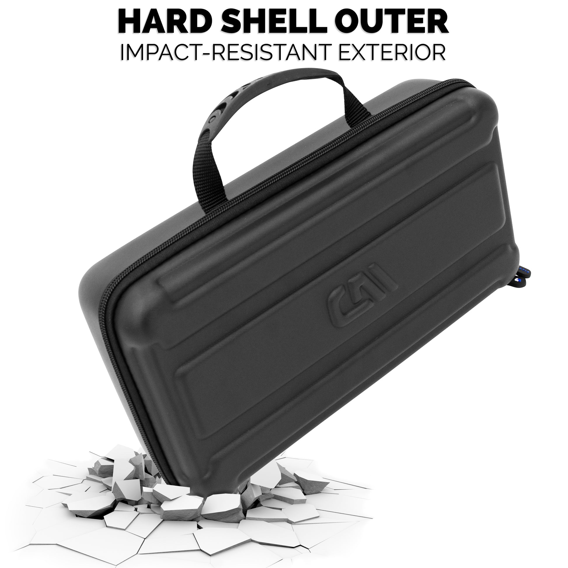 • Professional Hard Shell EVA Construction: Durable Ethylene-vinyl Acetate shell with sturdy, compact design protects your DJ mixing tools from impacts, drops, and dings that can damage your audio interface, while maintaining a discreet black design that matches your gig bag.