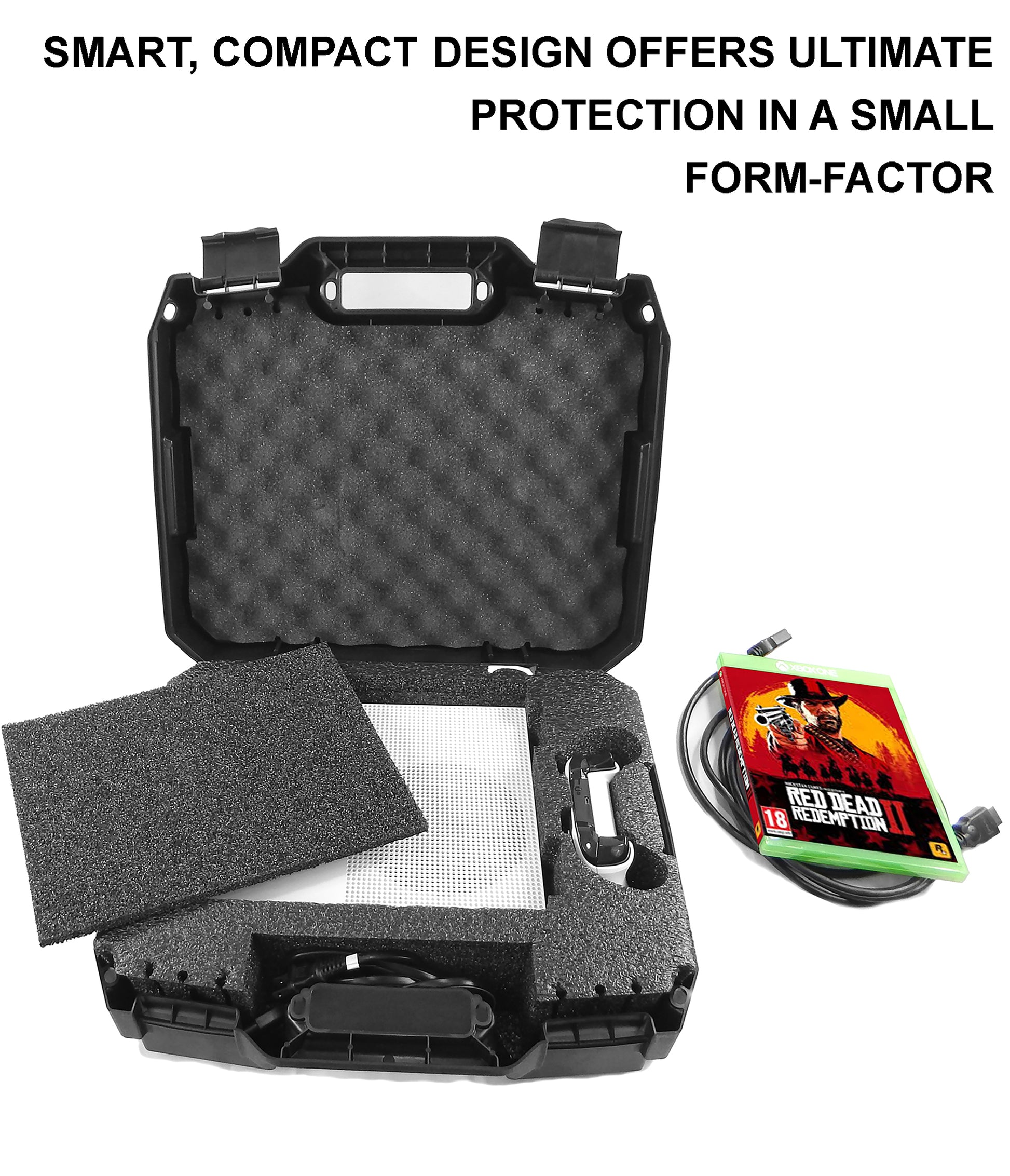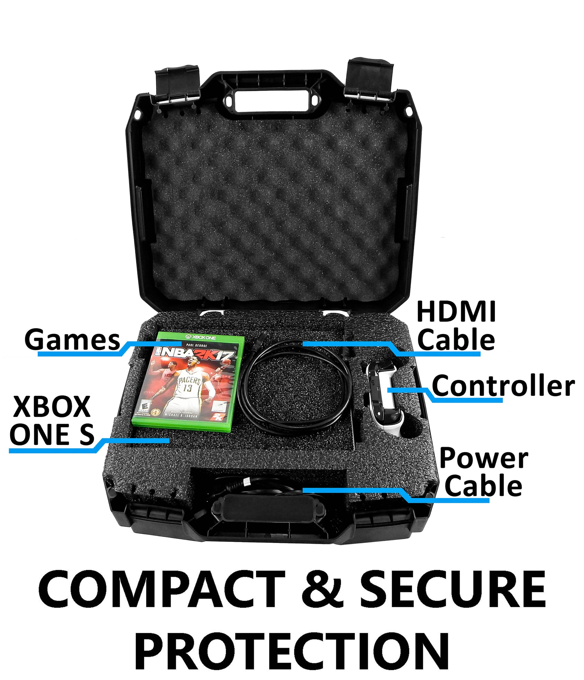 • Designed Specifically for Xbox One S: Premium Xbox One S case offering custom-fit solution with precision-cut foam compartments to securely store your console, controller, power adapter, and accessories with compatibility only for Xbox One S (not X or Original) providing optimized protection for specific Xbox One S dimensions and configuration.