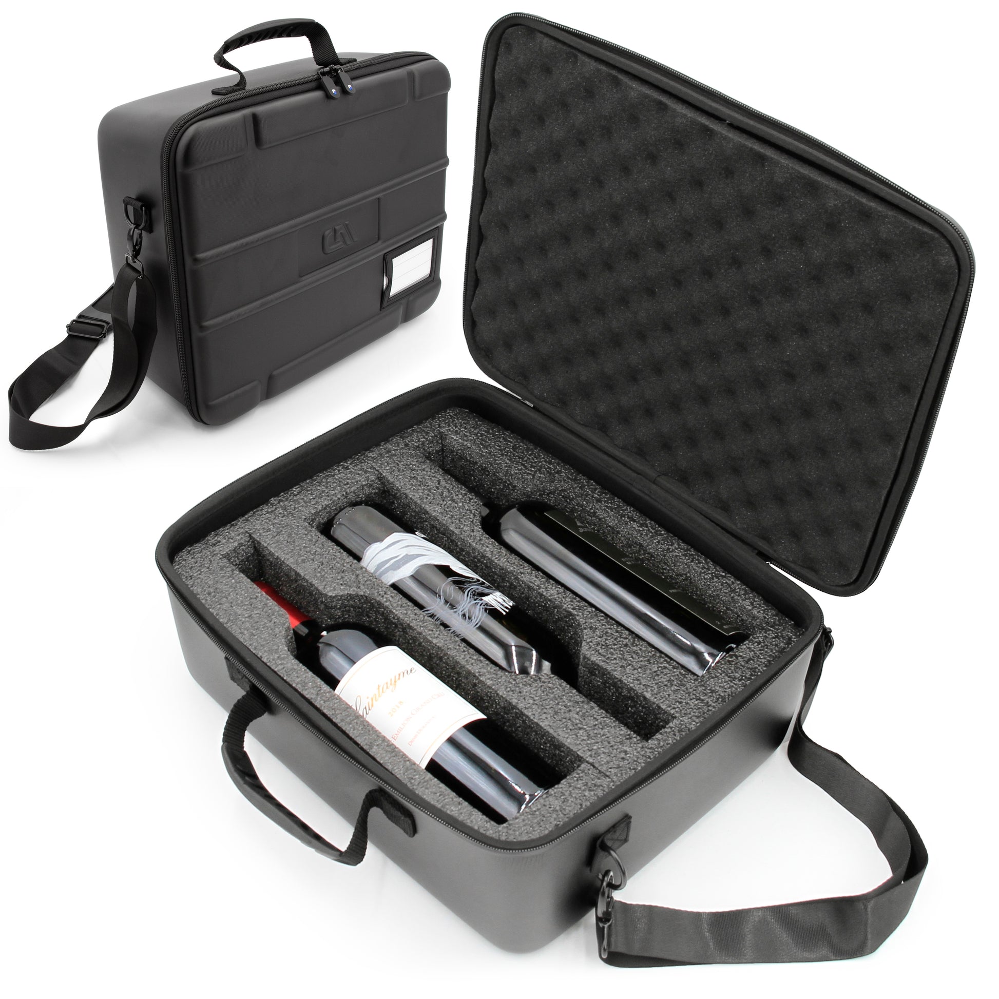 Wine Travel Case for 3 Bottles with Shock-Absorbing Foam & Adjustable Carrying Strap - Protective Wine Suitcase for Storage