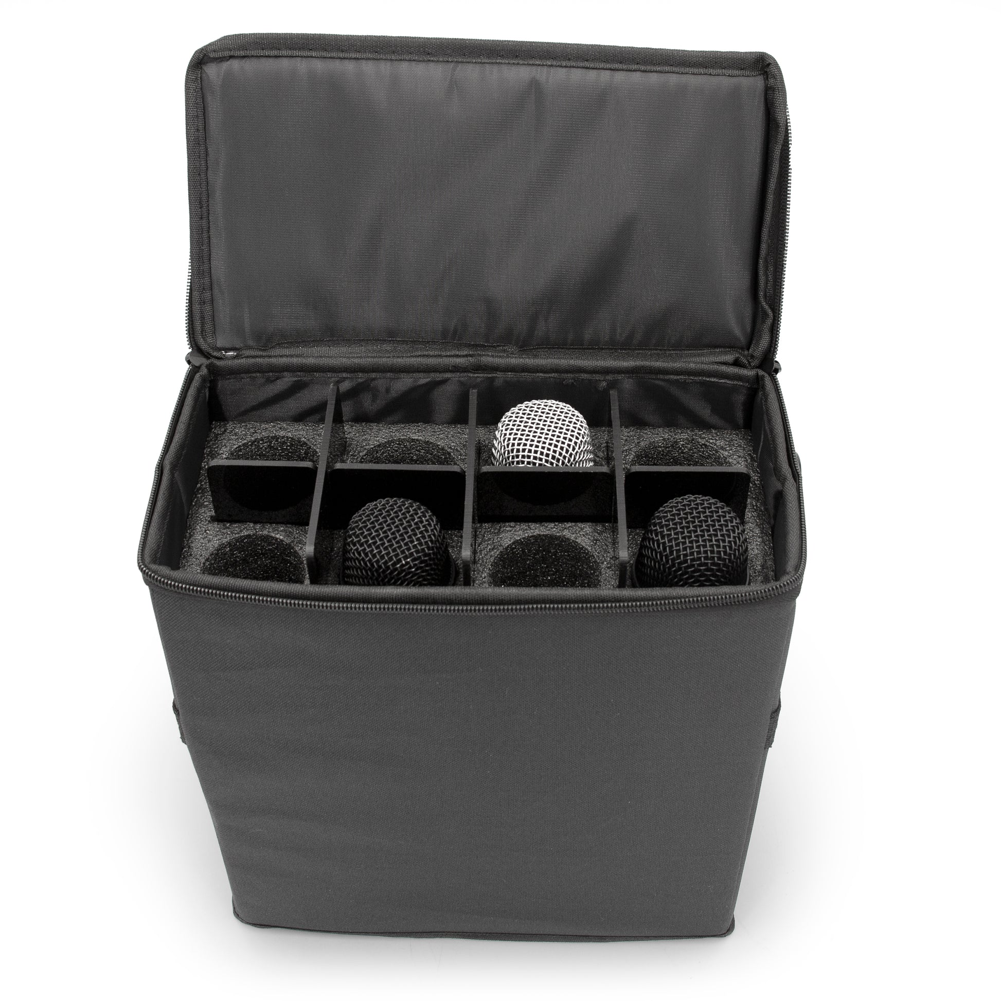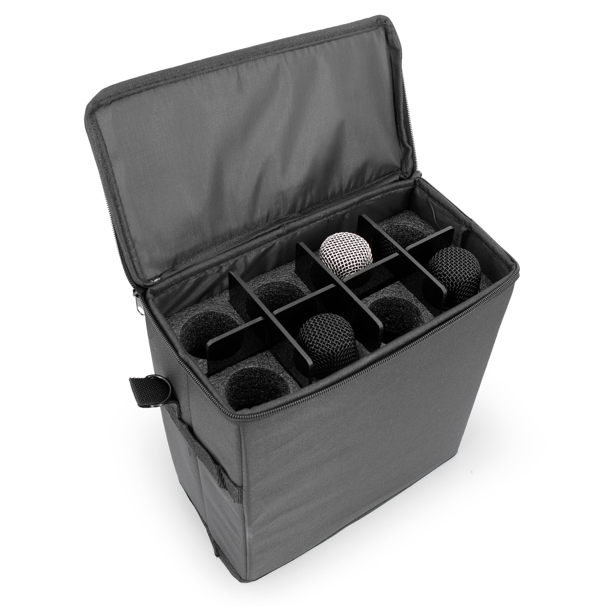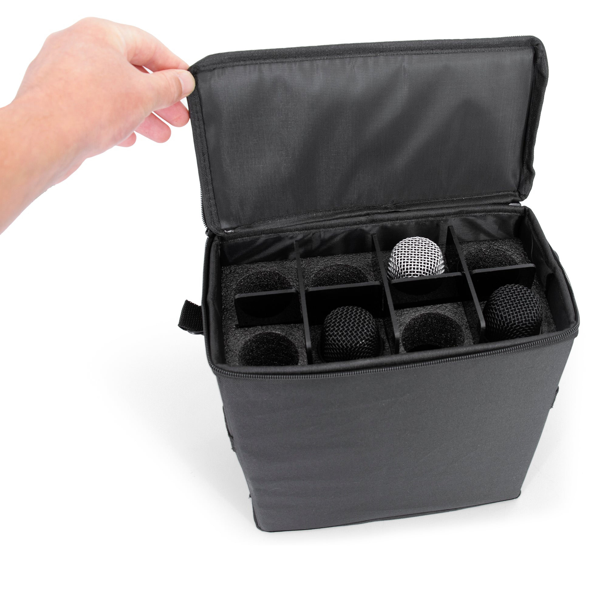 • Ideal For Travel With Removable Shoulder Strap: Sleek design provides budget solution for storing or transporting up to eight portable microphones - interior main compartment has eight separate slots with foam insert holding mics upright