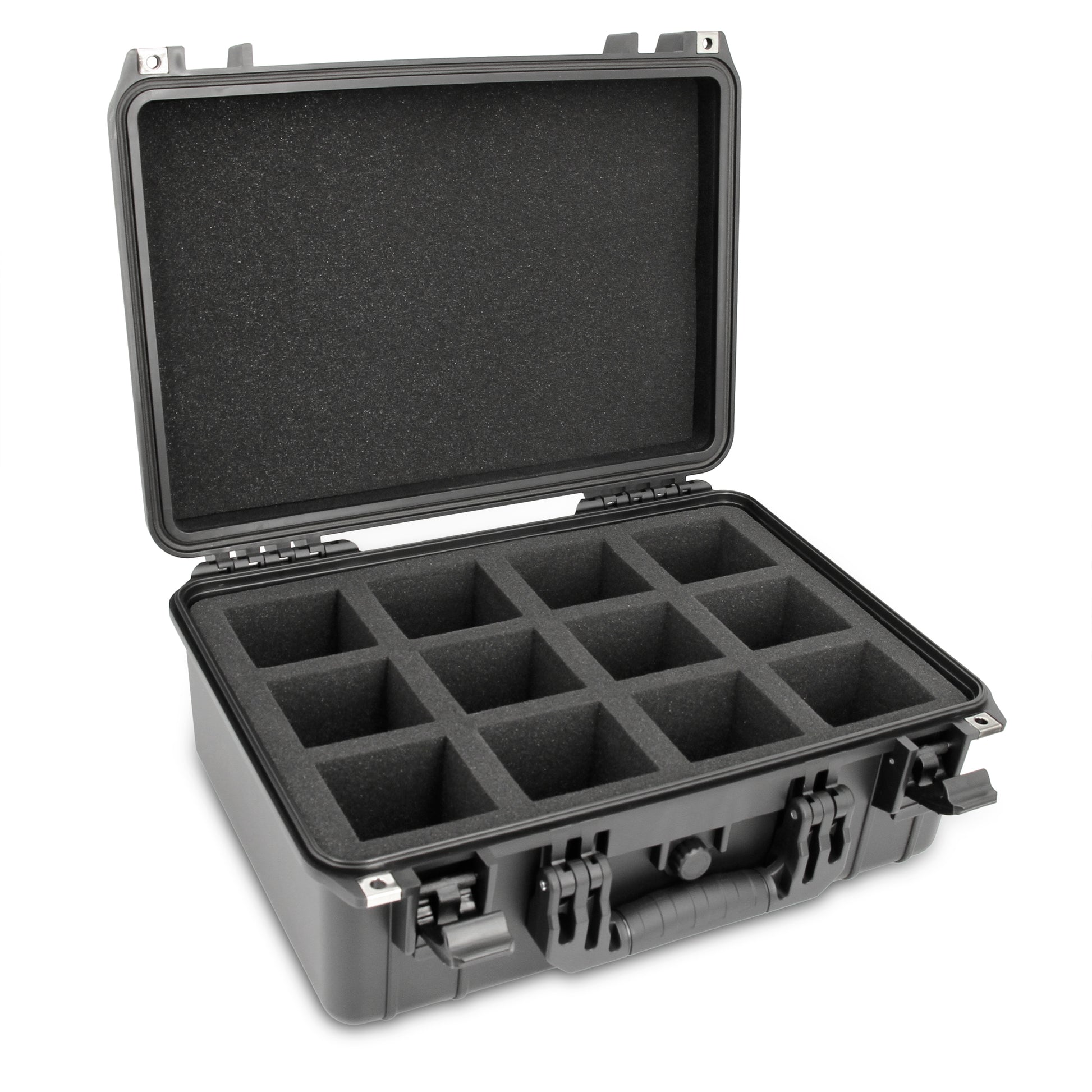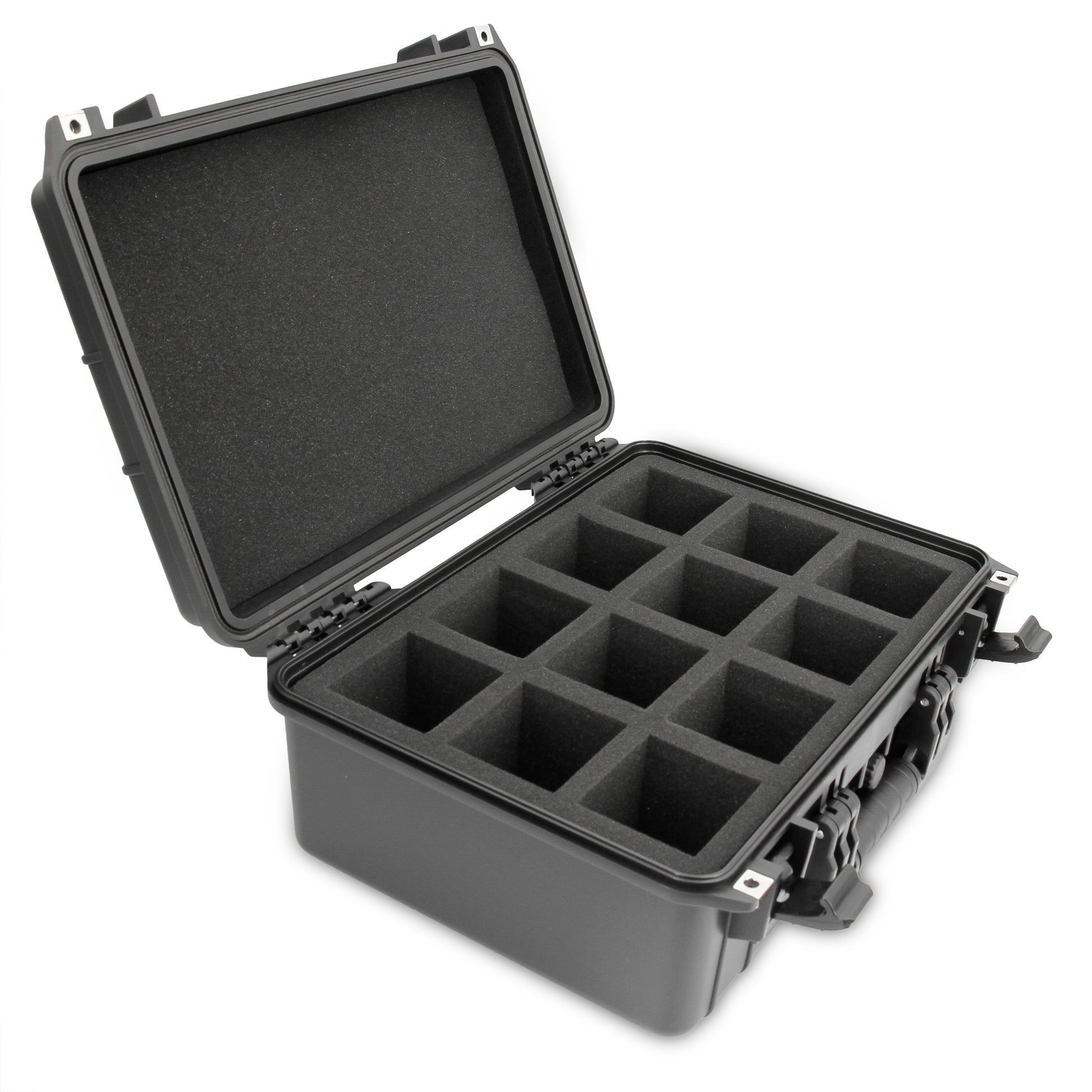 - Custom-Fit Storage for Specific Battery Sizes: The interior foam includes 12 individual compartments measuring 5” x 3” x 3.25”, designed from impact-resistant foam to hold and separate drill batteries. Exterior Dimensions: 18" x 14" x 7".